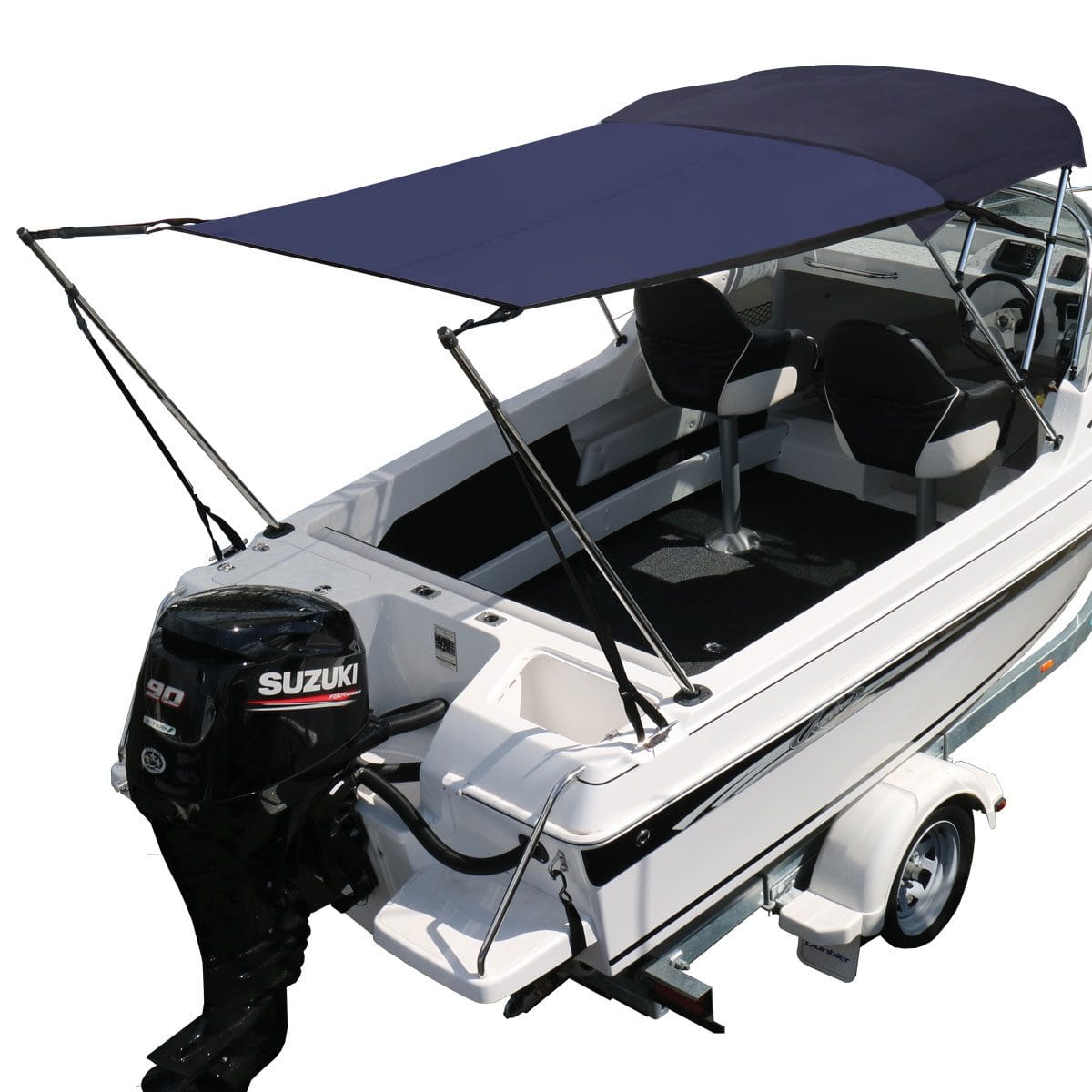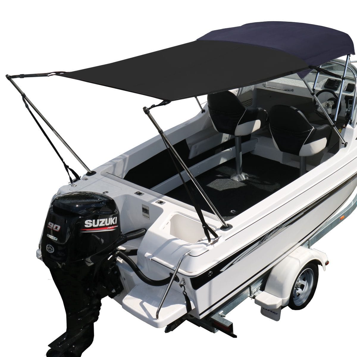 Versatile sun shade kit which extends the shaded area of the Bimini.