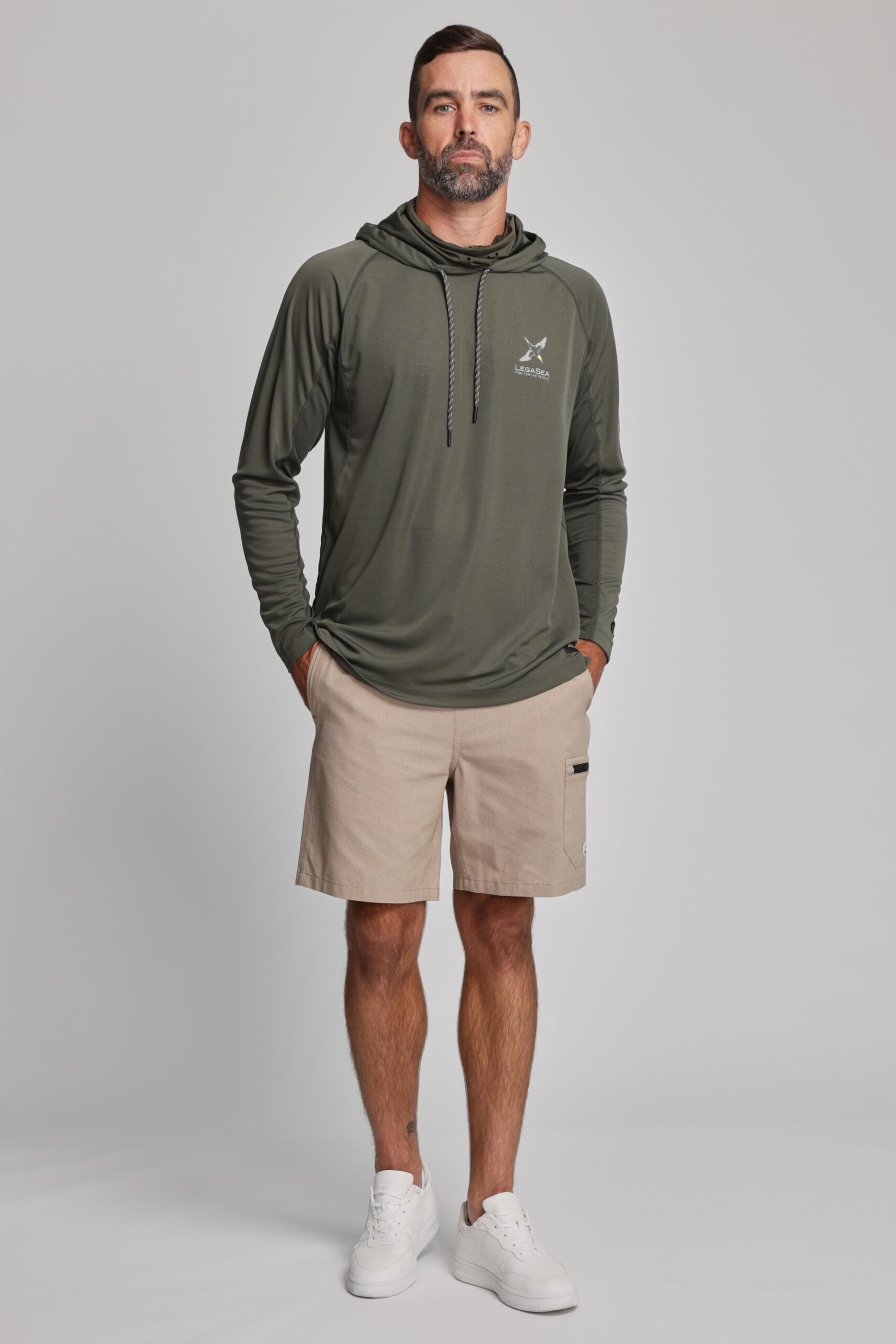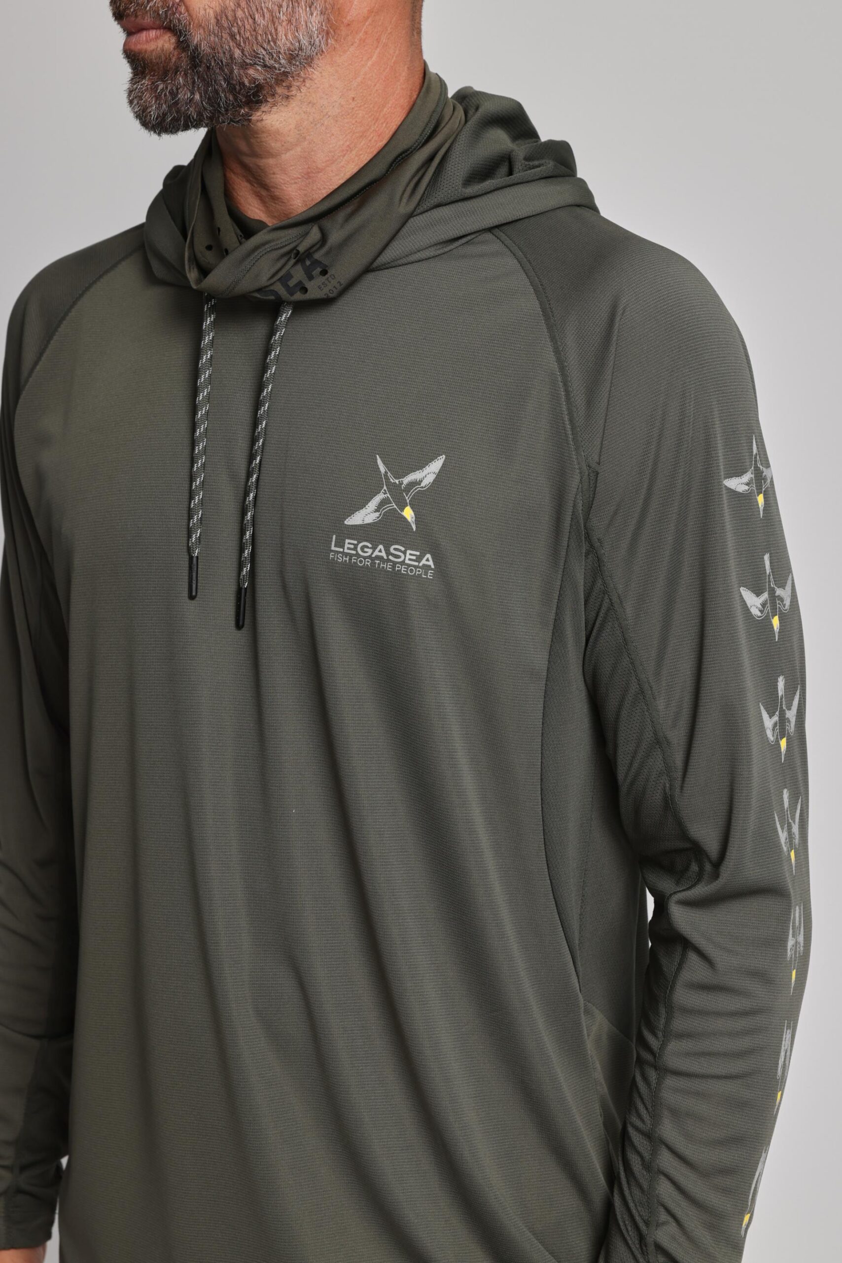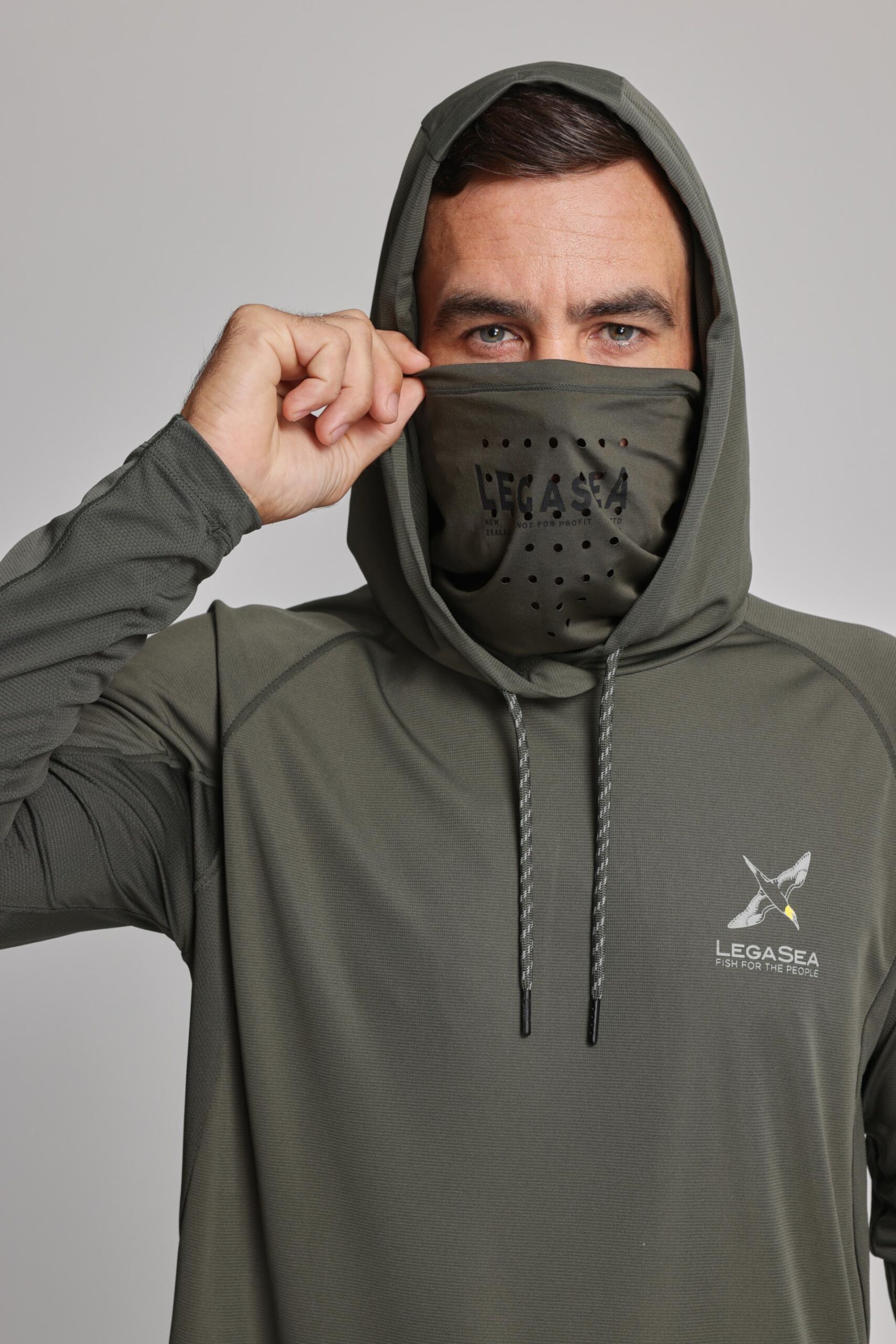 The LegaSea Gannet UV Hoody is made from a breathable moisture-wicking fabric that dries quickly and is perfect for days out on the boat. Including a UV protection rating and neck gaiter with perforated holes to protect you against the harsh conditions of the sun. This piece also features mesh lining under the arms, thumb holes, and adjustable drawstrings for optimal comfort. The Gannet illustrations featured on the chest and down the sleeves were designed by local NZ artist Blake Gordon.