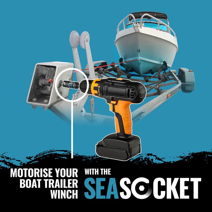 Simply remove your winch handle, attach the SEA SOCKET to a cordless drill, connect to your winch and operate the drill to effortlessly which will retrieve your boat in seconds.