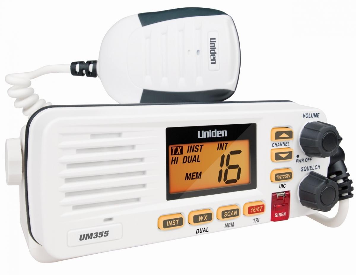 The Uniden UM355 VHF is a fixed mount, rugged, splash proof marine radio.